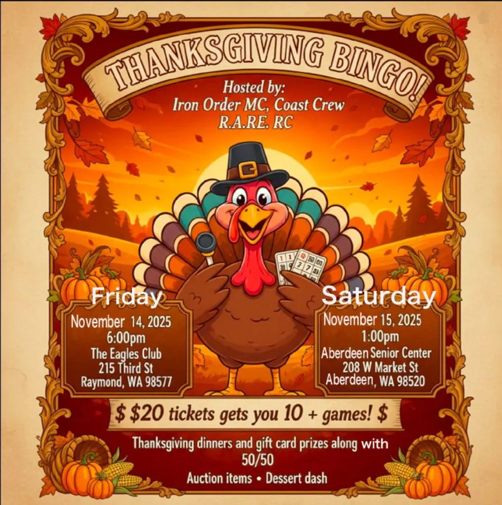 November 14th and 15th ~ Bingo - Turkey dinner prize giveaway!
